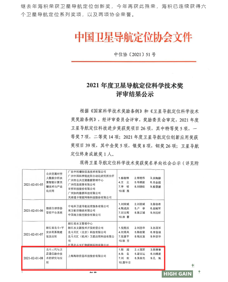 【H·時(shí)訊】喜報(bào)!—海積榮獲2021年度衛(wèi)星導(dǎo)航定位創(chuàng)新應(yīng)用獎(jiǎng)!