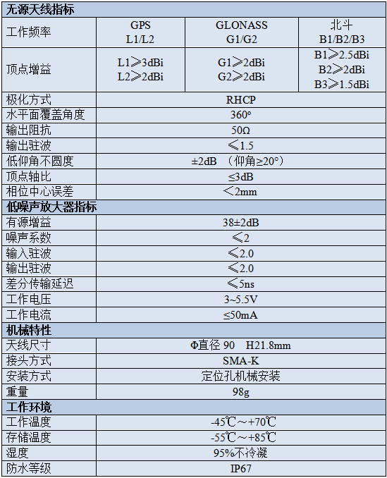 具有高頂點增益,良好的低仰角增益、廣角圓極化和穩(wěn)定的相位中心等特點,適用于多系統(tǒng)、高精度測繪及特種定位領(lǐng)域。
